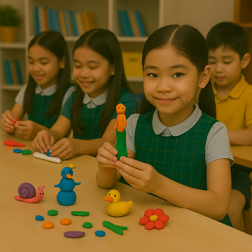 - Tạo hình đất sét: Tự do sáng tạo hình thù yêu thích, từ con vật, đồ vật đến nhân vật cổ tích.